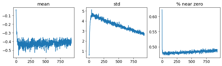 plot_layer_stats? What does the x-axis represent? - Why are activations near zero problematic?
